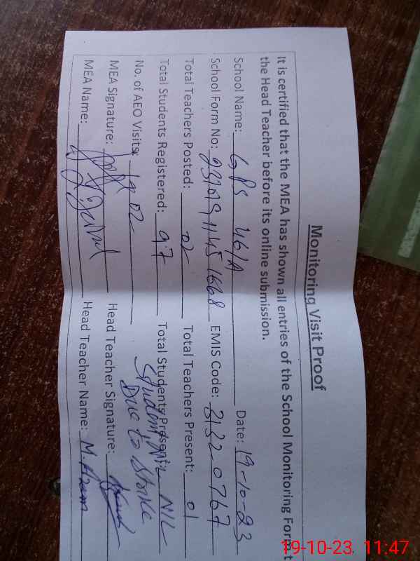 | Certified that this School was Inspected by the Undersigned MEA/DMO Today and the Information Stated Above is as Per Record. | |||||