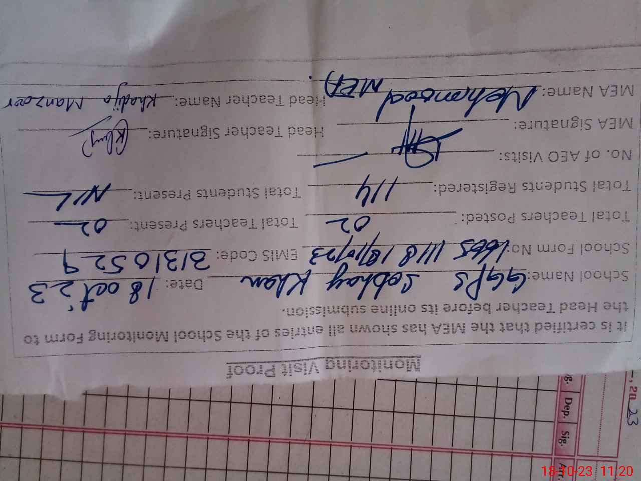 | Name: KH**** MA**** Designation: (School Headmaster's/Headmistress's) PST Phone/Cell Number: 03**** |