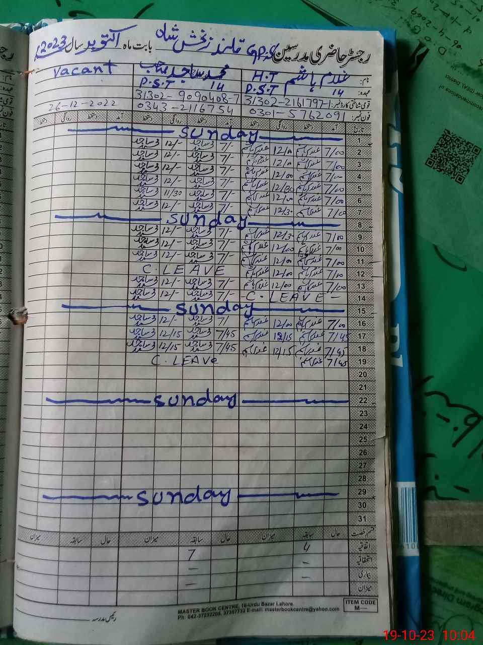 | Name: GH**** HA**** Designation: (School Headmaster's/Headmistress's) PST/PTC/JV Phone/Cell Number: 03**** |