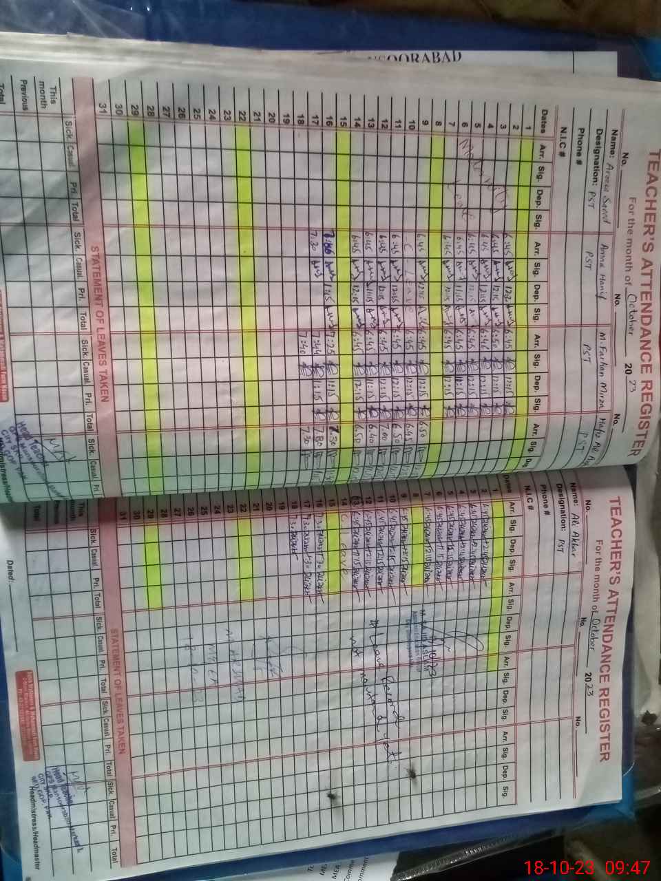 | CNIC | Full Name | Designation | R/C | Absence During Last Calender Month |