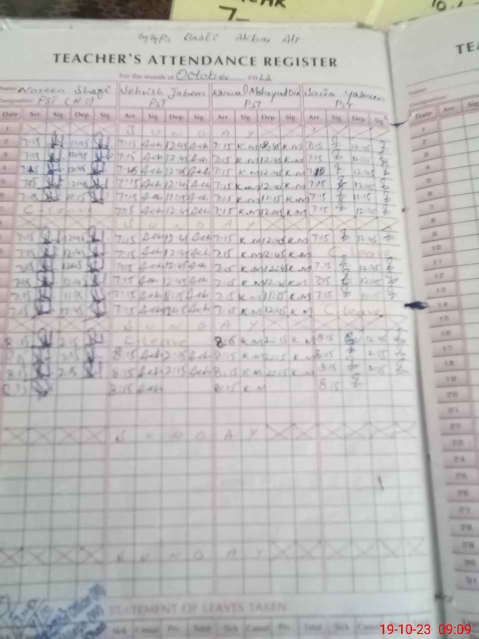| Name: No**** Sh**** Designation: (School Headmaster's/Headmistress's) PST Phone/Cell Number: 03**** |