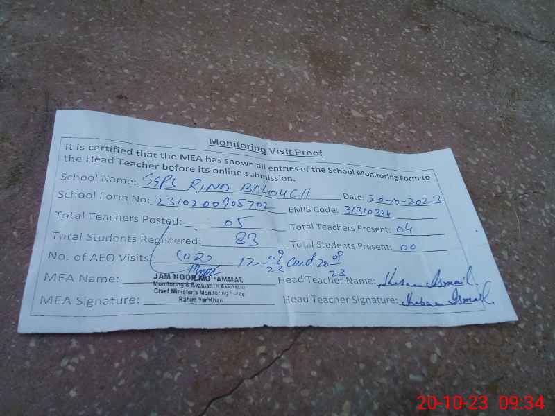 | EMIS Code: 31310344 | Name of School: GGPS RIND BULUCH | |||
