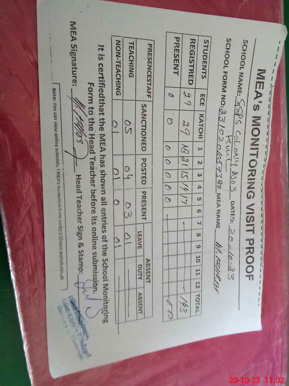 | EMIS Code: 36420358 | Name of School: GGPS COLONY NO.3 KHANEWAL | |||