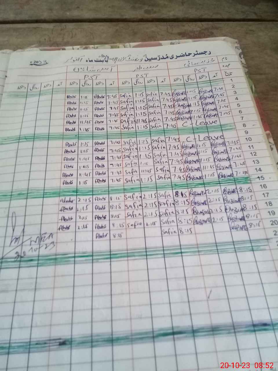 | CNIC | Full Name | Designation | R/C | Absence During Last Calender Month |