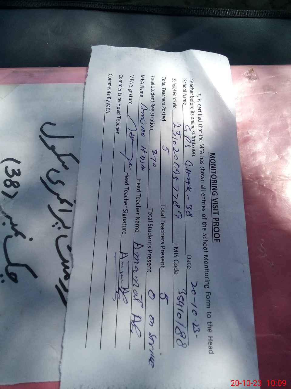 | EMIS Code: 35410188 | Name of School: GPS CHAK NO. 38 FEROZWALA | |||
