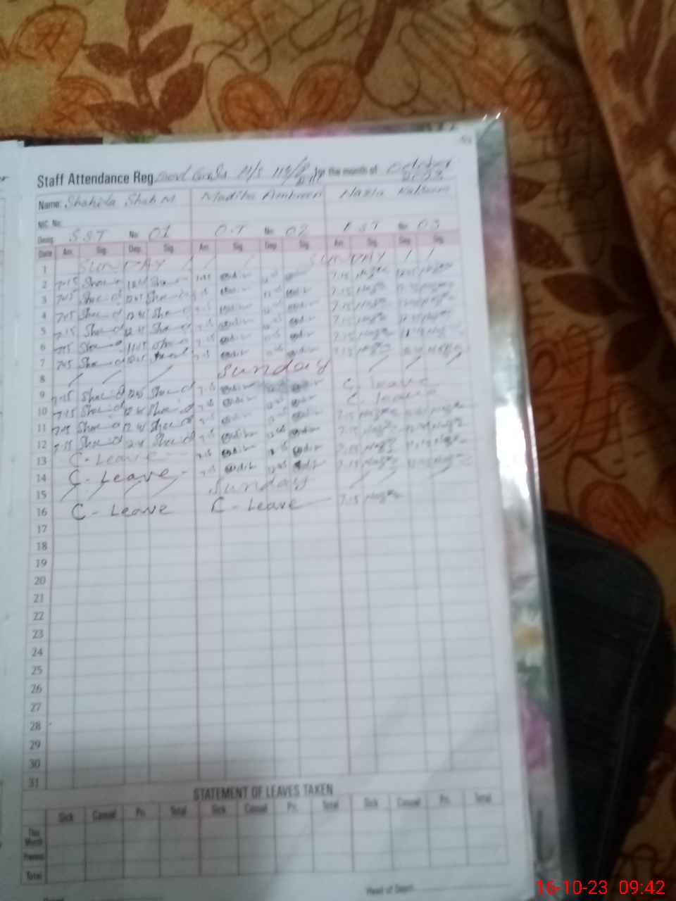 | 31**** | Iq**** Sh**** | 1 | 30 | 0 | 0 | 0 | 30 | 0 | 0 | 0 | 0 | Maternity | |
