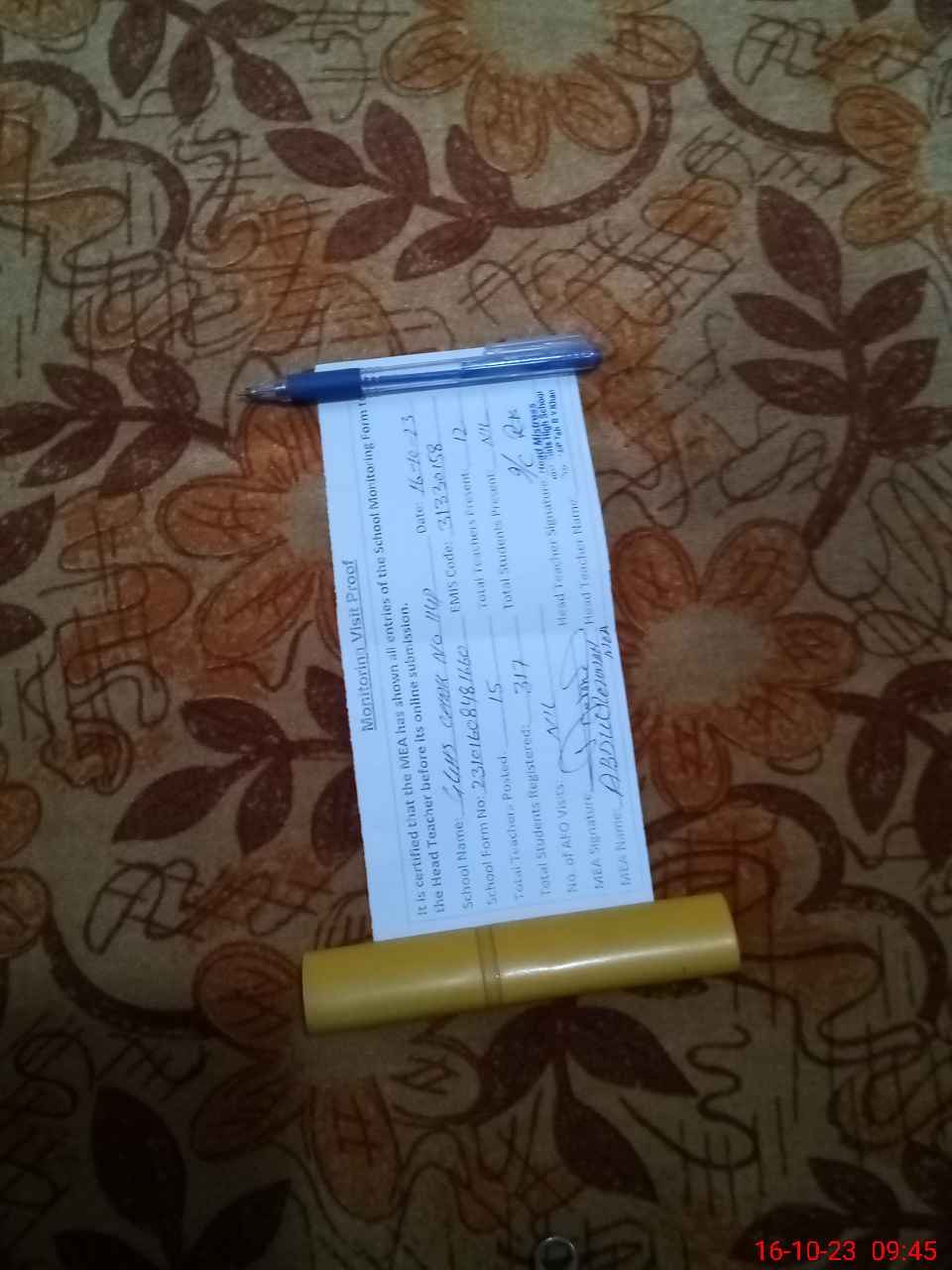| Attendance Register | Head Teacher | MEA with School | Visit Proof |