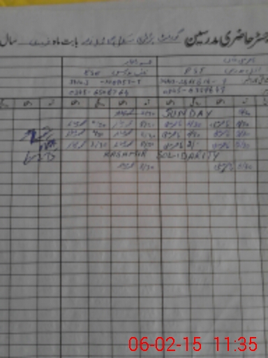 | CNIC | Full Name | Designation | R/C | Absence During Last Calender Month |