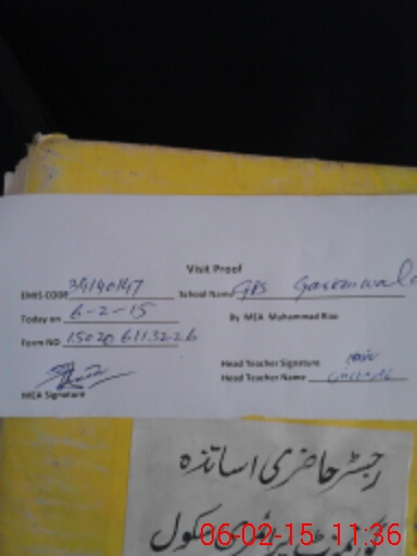 | Attendance Register | Head Teacher | MEA with School | Visit Proof |