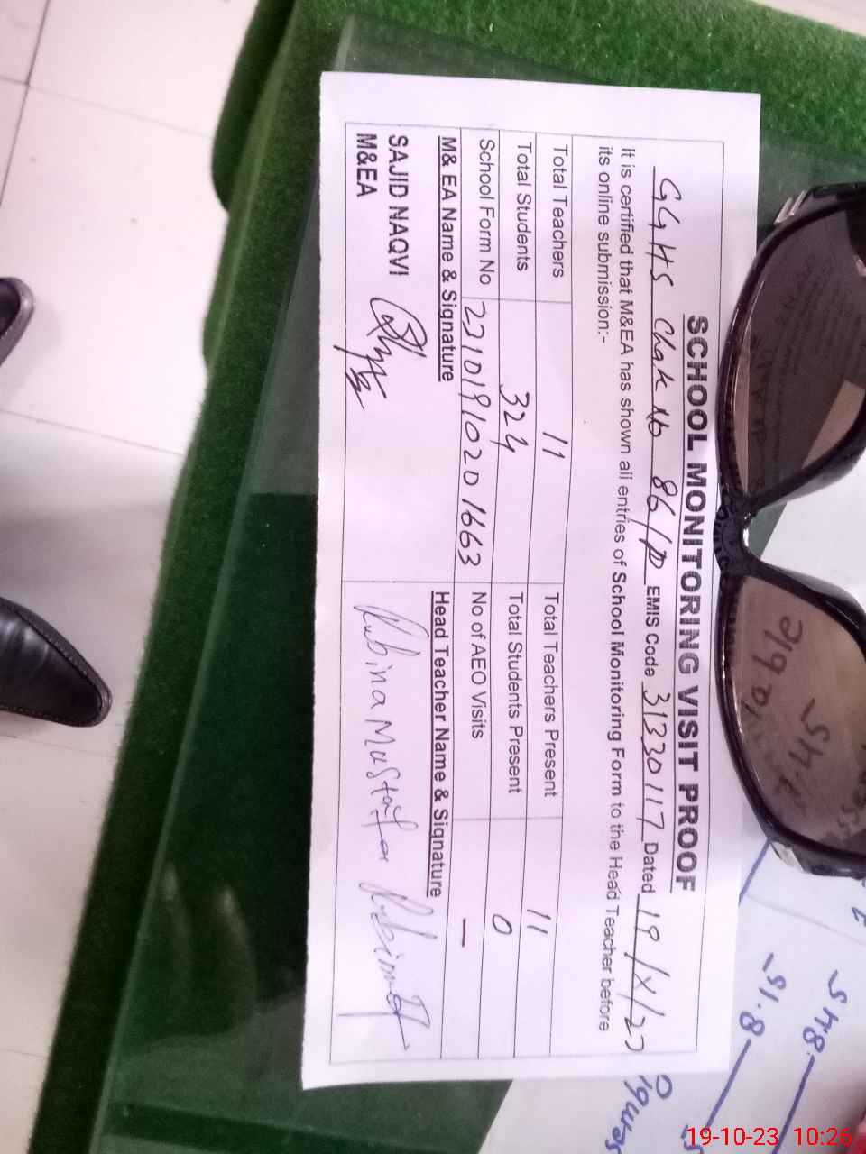 | Attendance Register | Head Teacher | MEA with School | Visit Proof |