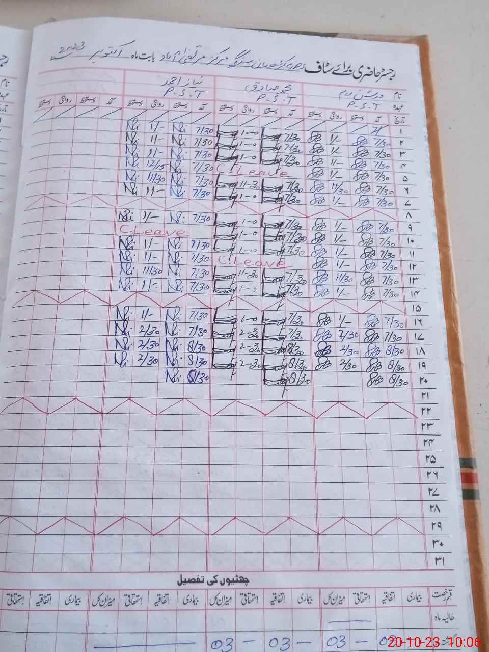 | CNIC | Full Name | Designation | R/C | Absence During Last Calender Month |
