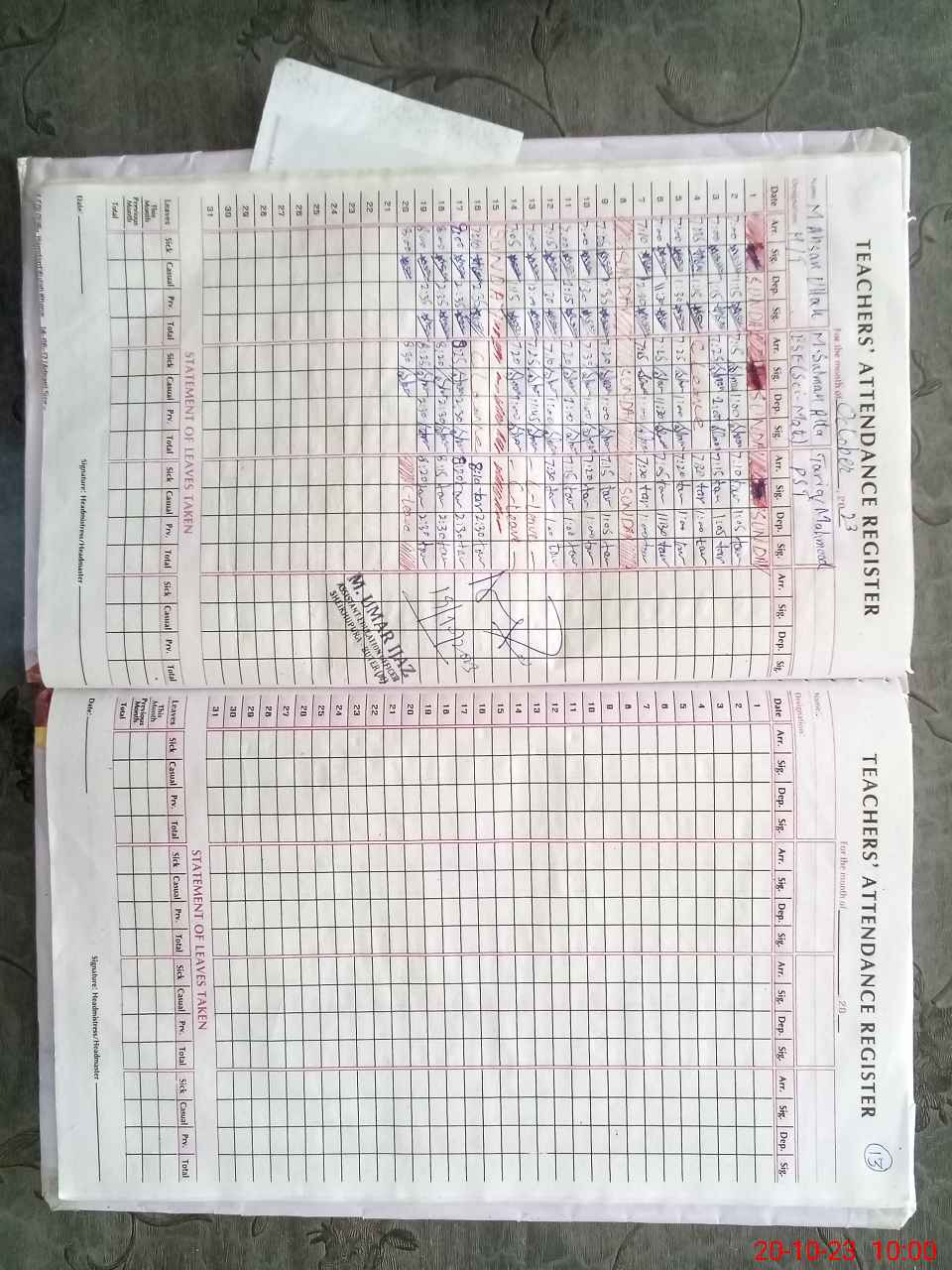 | Monitoring Date: 20-10-2023 | Start Time: 20-10-2023 09:46 AM | End Time: 20-10-2023 10:25 AM | Name of MEA: Mu**** Ra**** | |