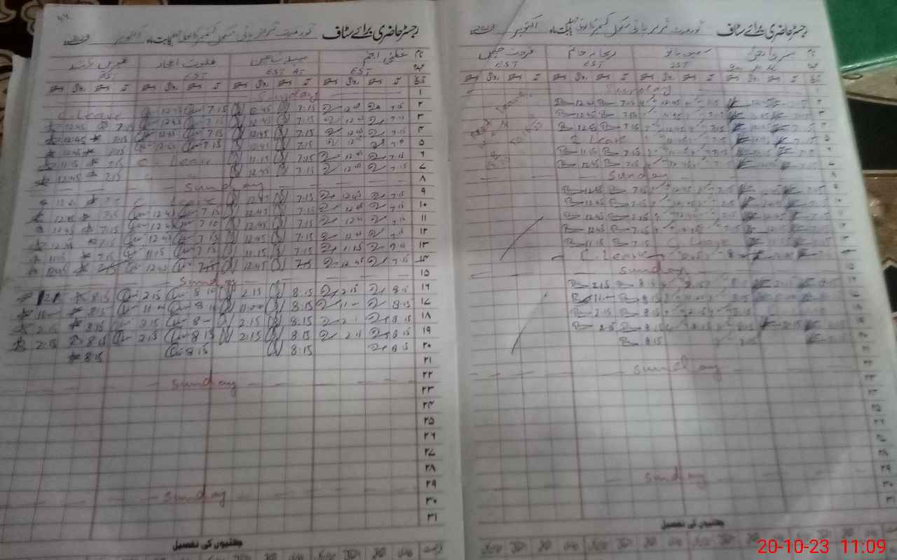 | CNIC | Full Name | Designation | R/C | Absence During Last Calender Month |