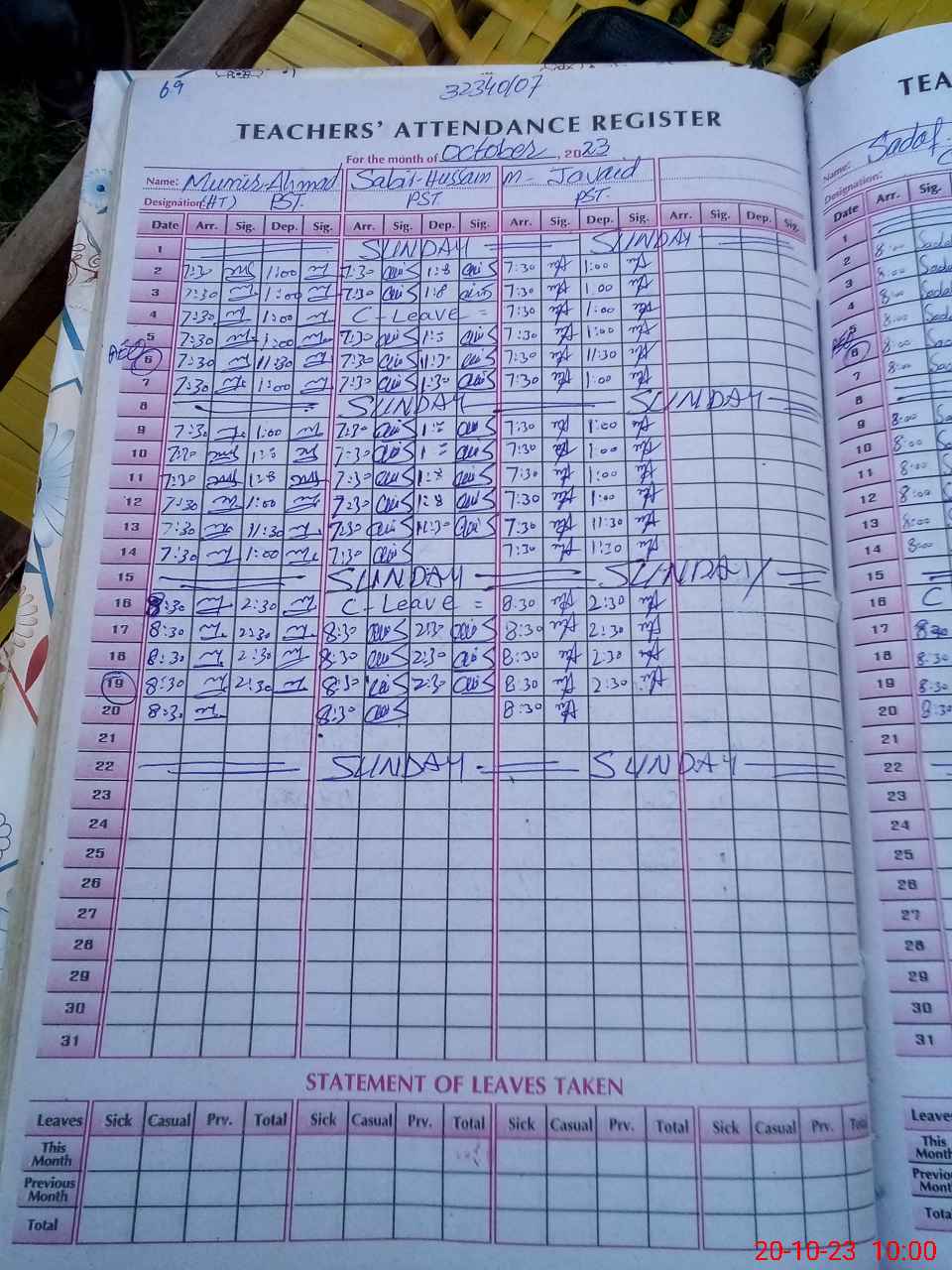 | Name: MU**** AH**** Designation: (School Headmaster's/Headmistress's) PST Phone/Cell Number: 03**** |