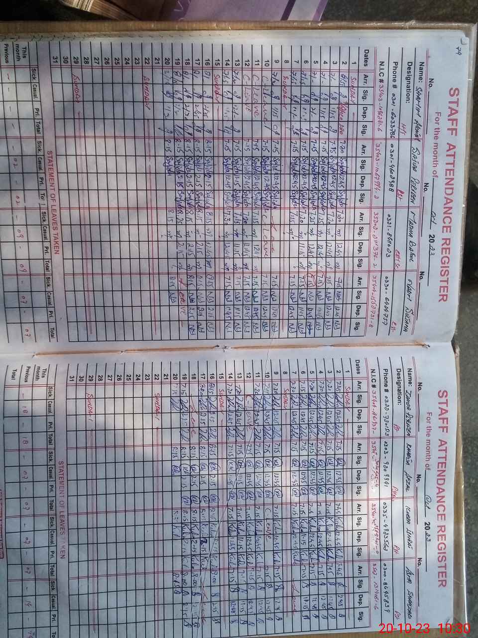 | CNIC | Full Name | Designation | R/C | Absence During Last Calender Month |