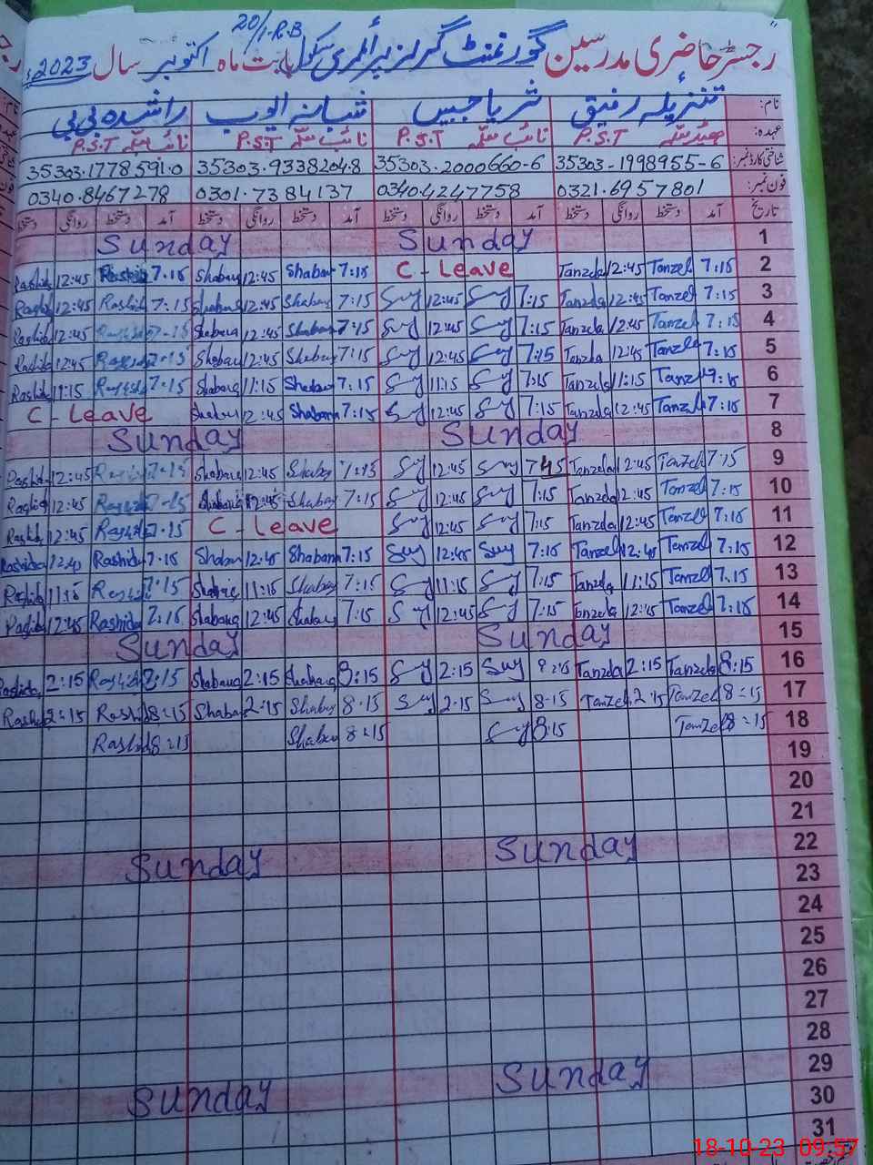 | CNIC | Full Name | Designation | R/C | Absence During Last Calender Month |