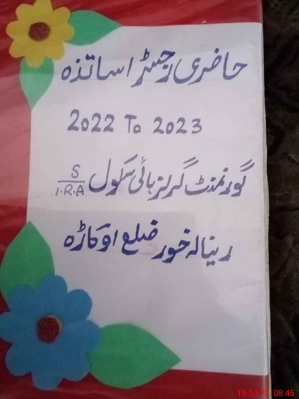 | Name: RU**** KH**** Designation: (School Headmaster's/Headmistress's) SST Arts Phone/Cell Number: 03**** |
