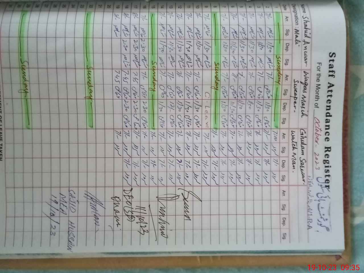 | CNIC | Full Name | Designation | R/C | Absence During Last Calender Month |