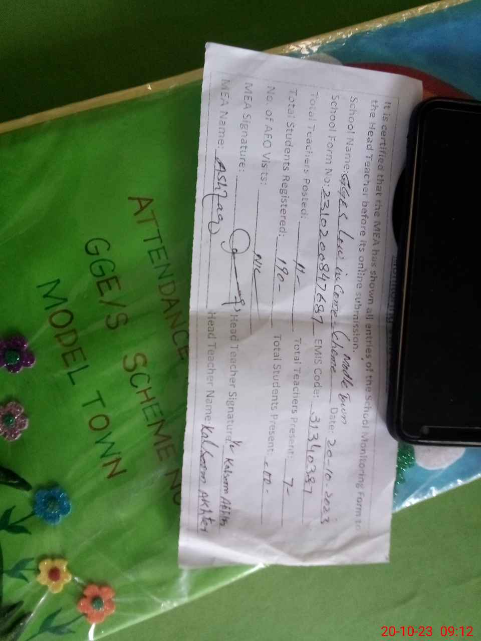 | EMIS Code: 31340387 | Name of School: GGES LOW INCOME SCHEME NO.2 MODEL TOWN | |||