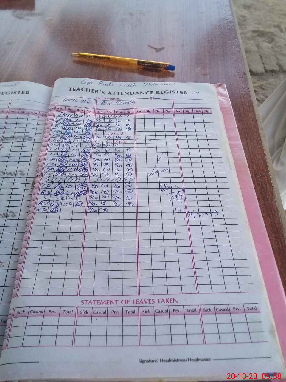 | Name: Ab**** Ha**** Designation: (School Headmaster's/Headmistress's) PST Phone/Cell Number: 03**** |