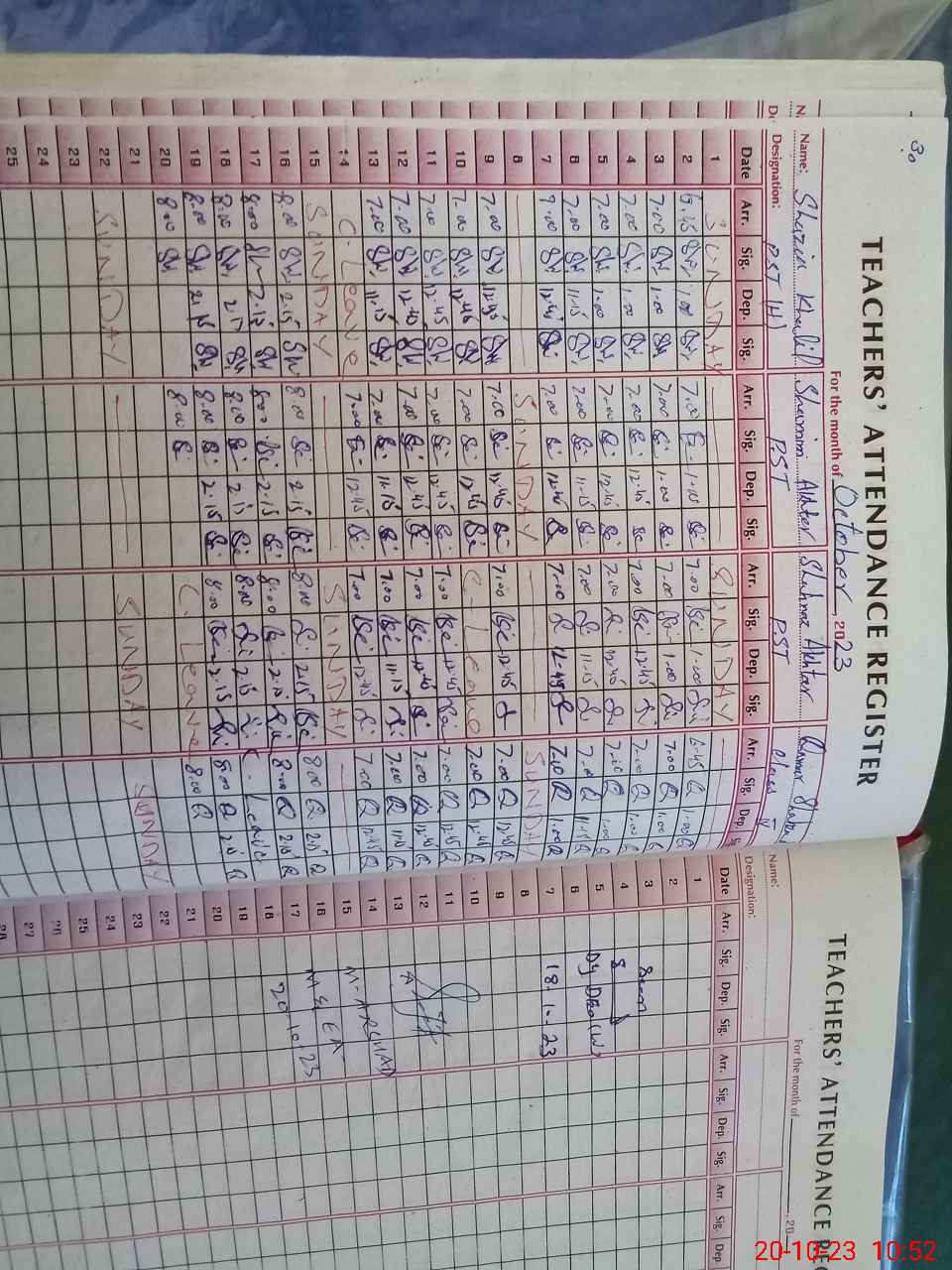 | CNIC | Full Name | Designation | R/C | Absence During Last Calender Month |