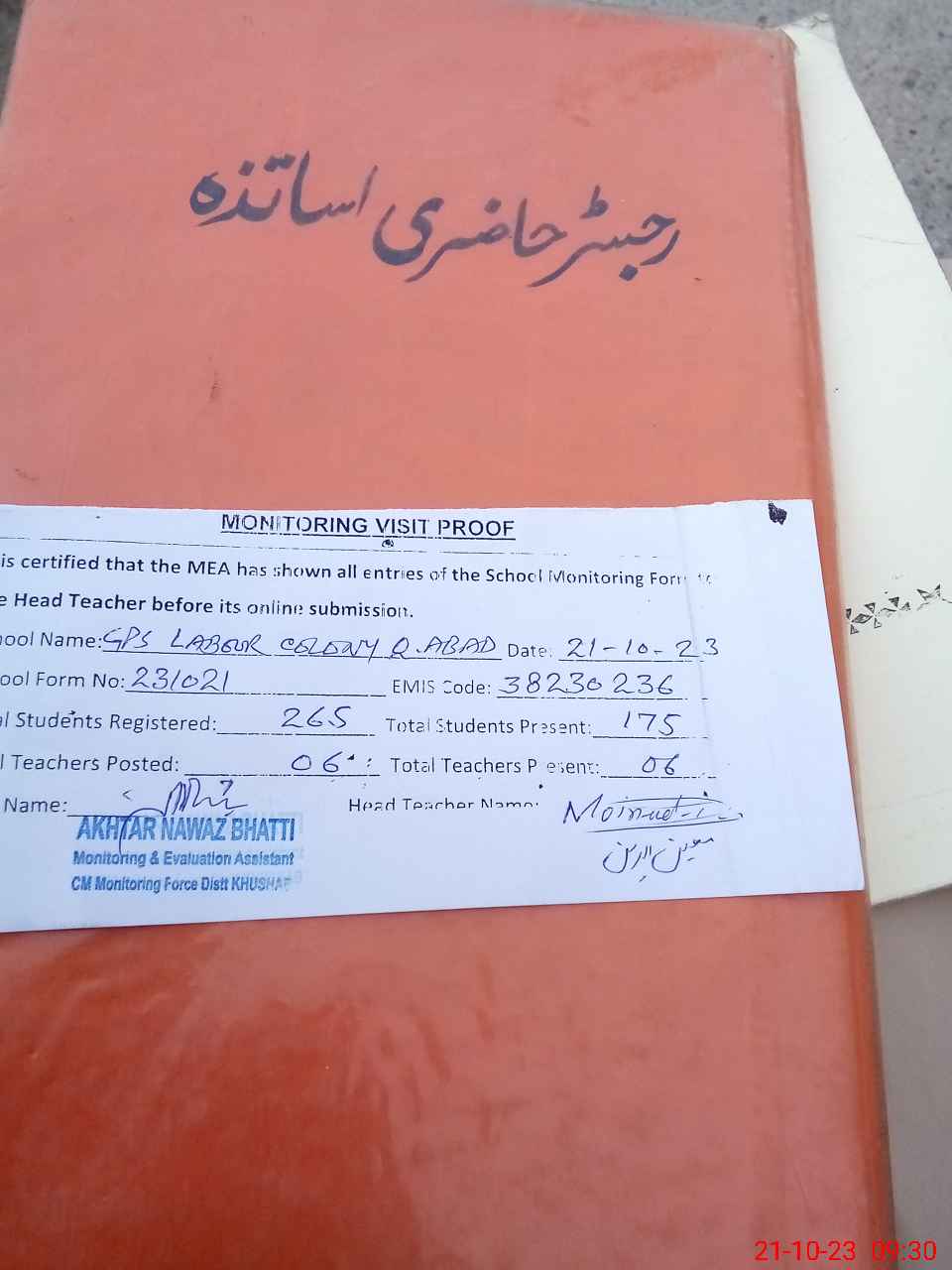 | EMIS Code: 38230236 | Name of School: GPS LABOUR COLONY | |||