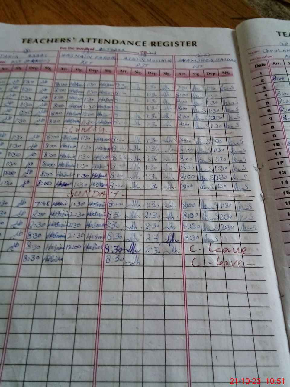 | CNIC | Full Name | Designation | R/C | Absence During Last Calender Month |