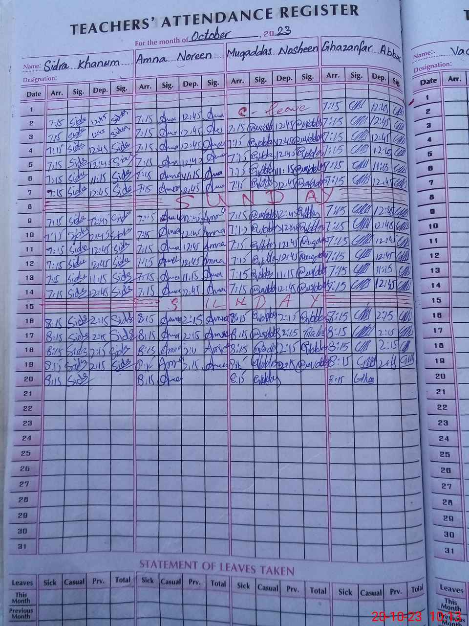 | Leave | Duty | Absent | Maternity | Medical | Ex- Pak |