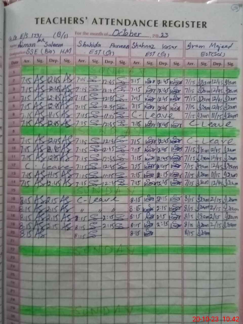 | CNIC | Full Name | Designation | R/C | Absence During Last Calender Month |