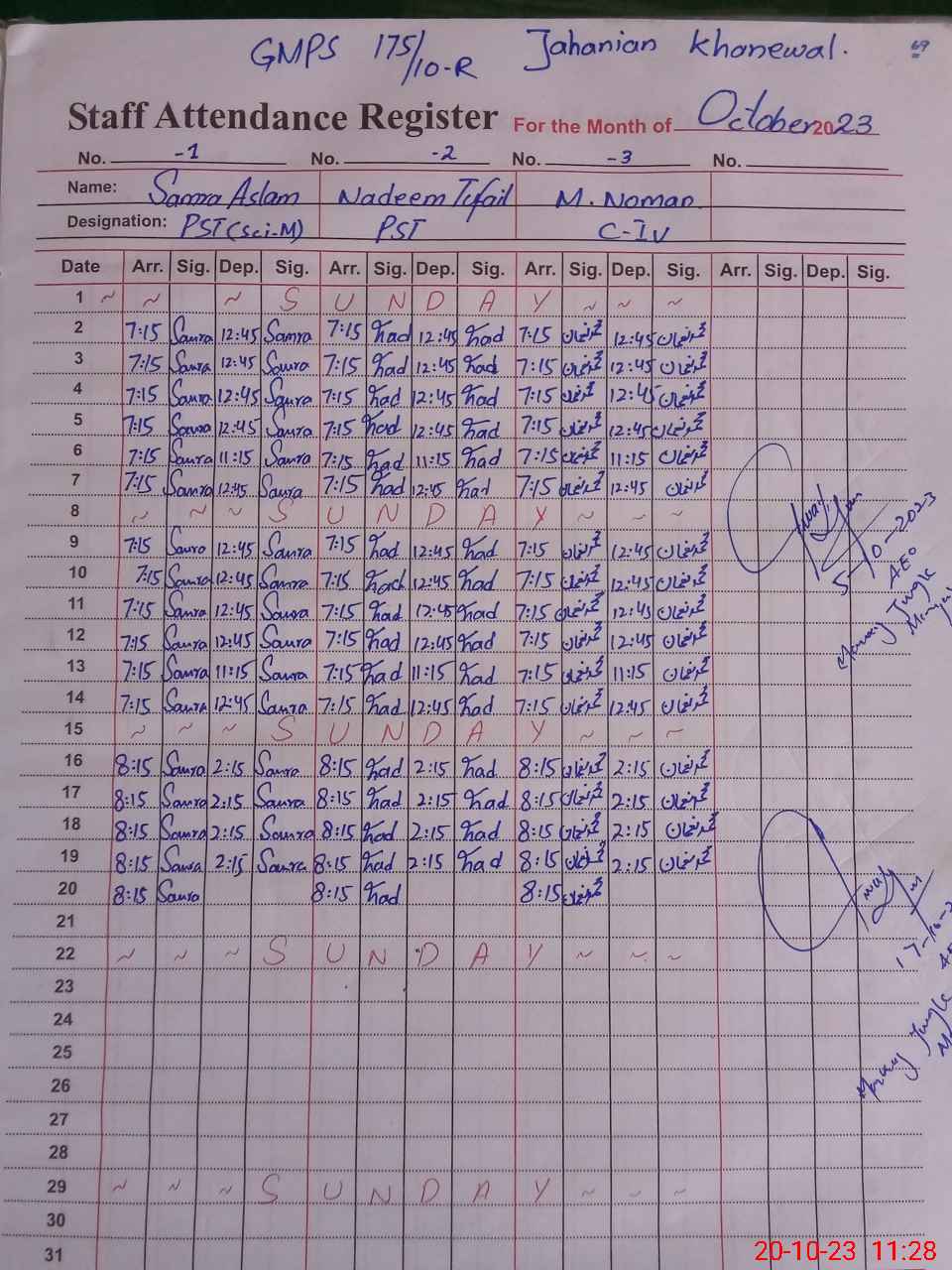| Name: Sa**** As**** Designation: (School Headmaster's/Headmistress's) PST Phone/Cell Number: 03**** |