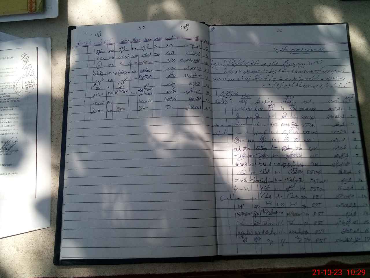 | CNIC | Full Name | Designation | R/C | Absence During Last Calender Month |