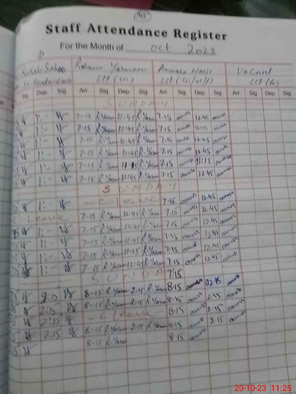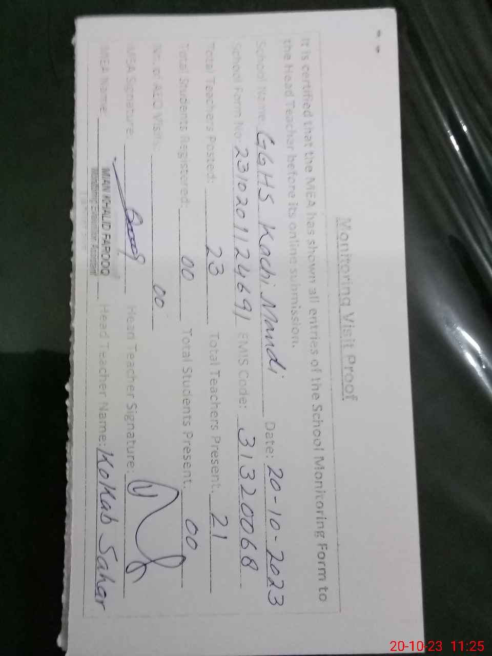 | Attendance Register | Head Teacher | MEA with School | Visit Proof |