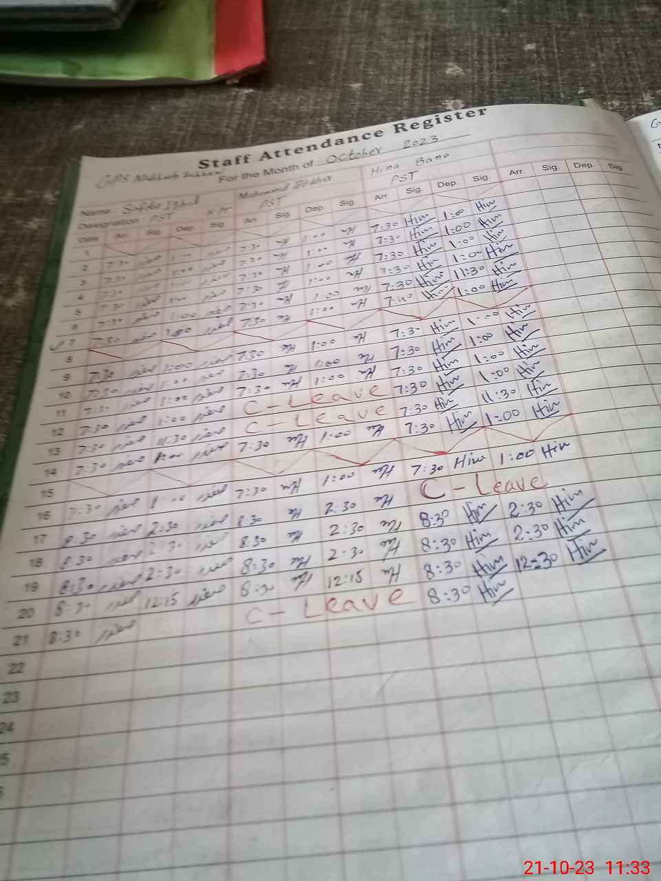 | CNIC | Full Name | Designation | R/C | Absence During Last Calender Month |