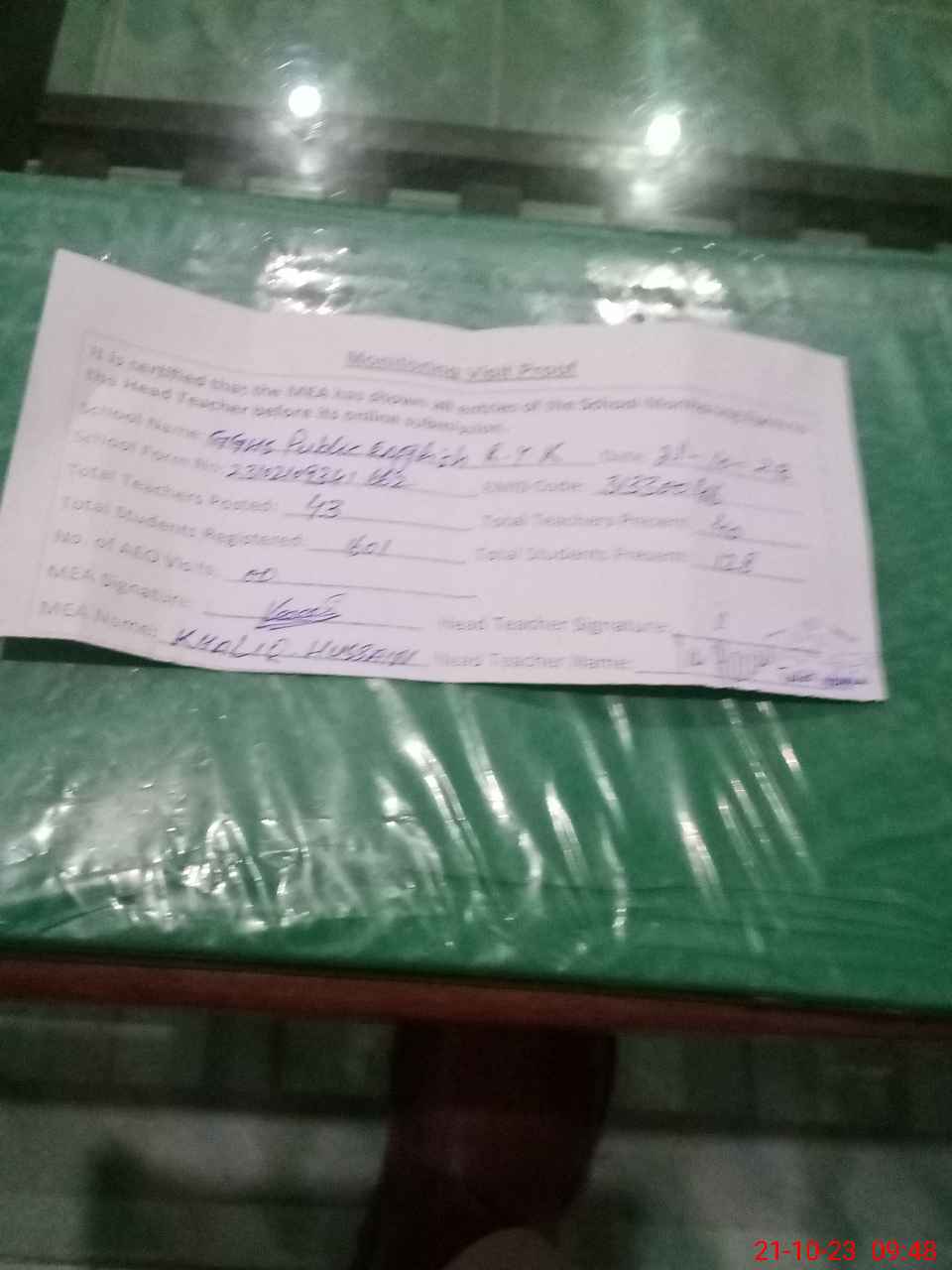 | Certified that this School was Inspected by the Undersigned MEA/DMO Today and the Information Stated Above is as Per Record. | |||||
