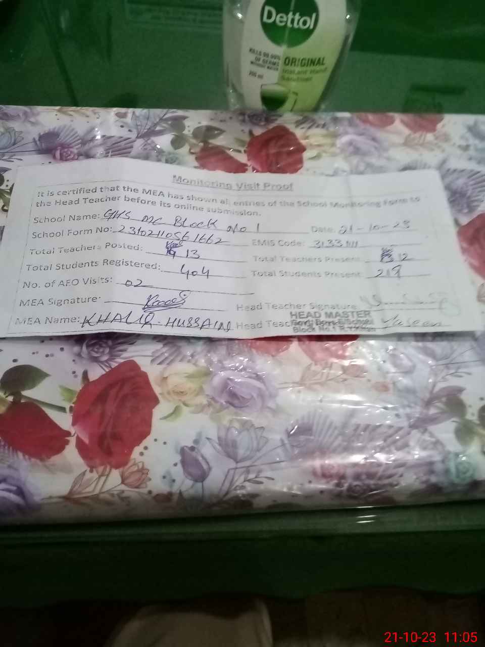 | EMIS Code: 31331111 | Name of School: GHS MC BLOCK NO. 1 | |||