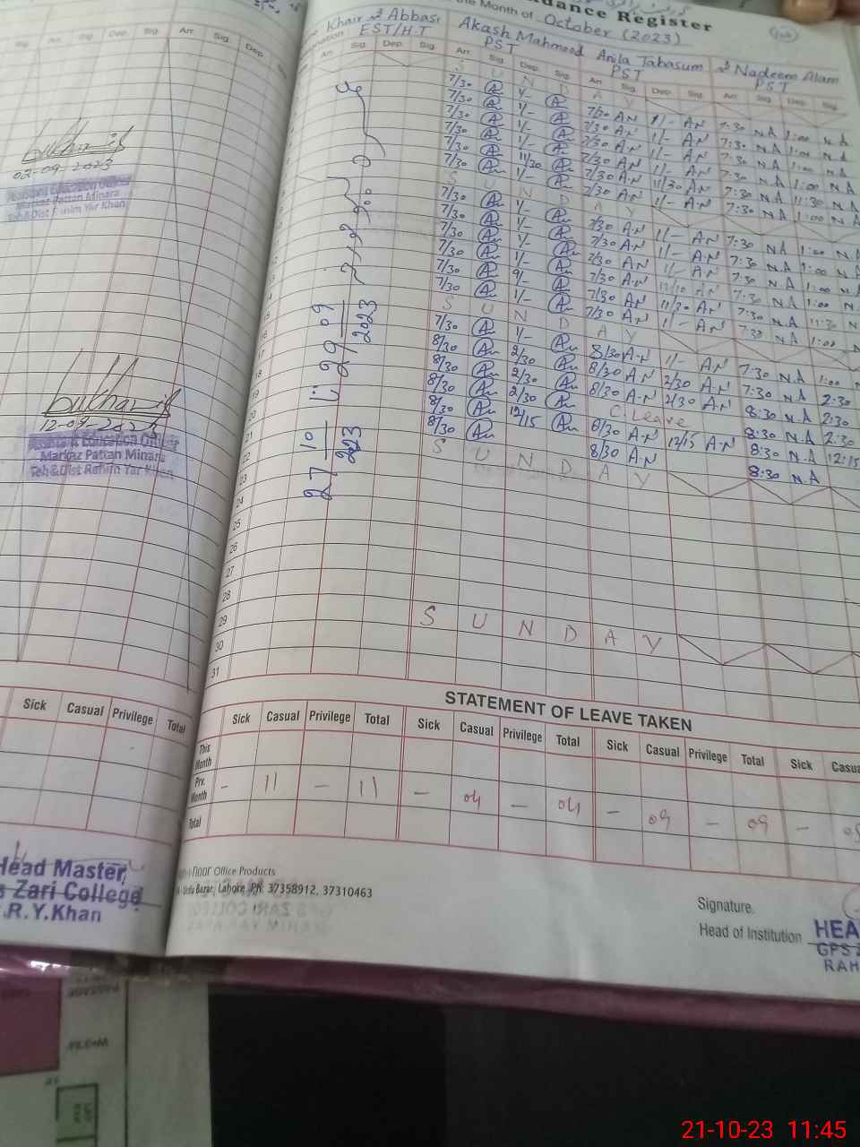| Name: Kh**** Mu**** Ab**** Designation: (School Headmaster's/Headmistress's) Est Phone/Cell Number: 03**** |