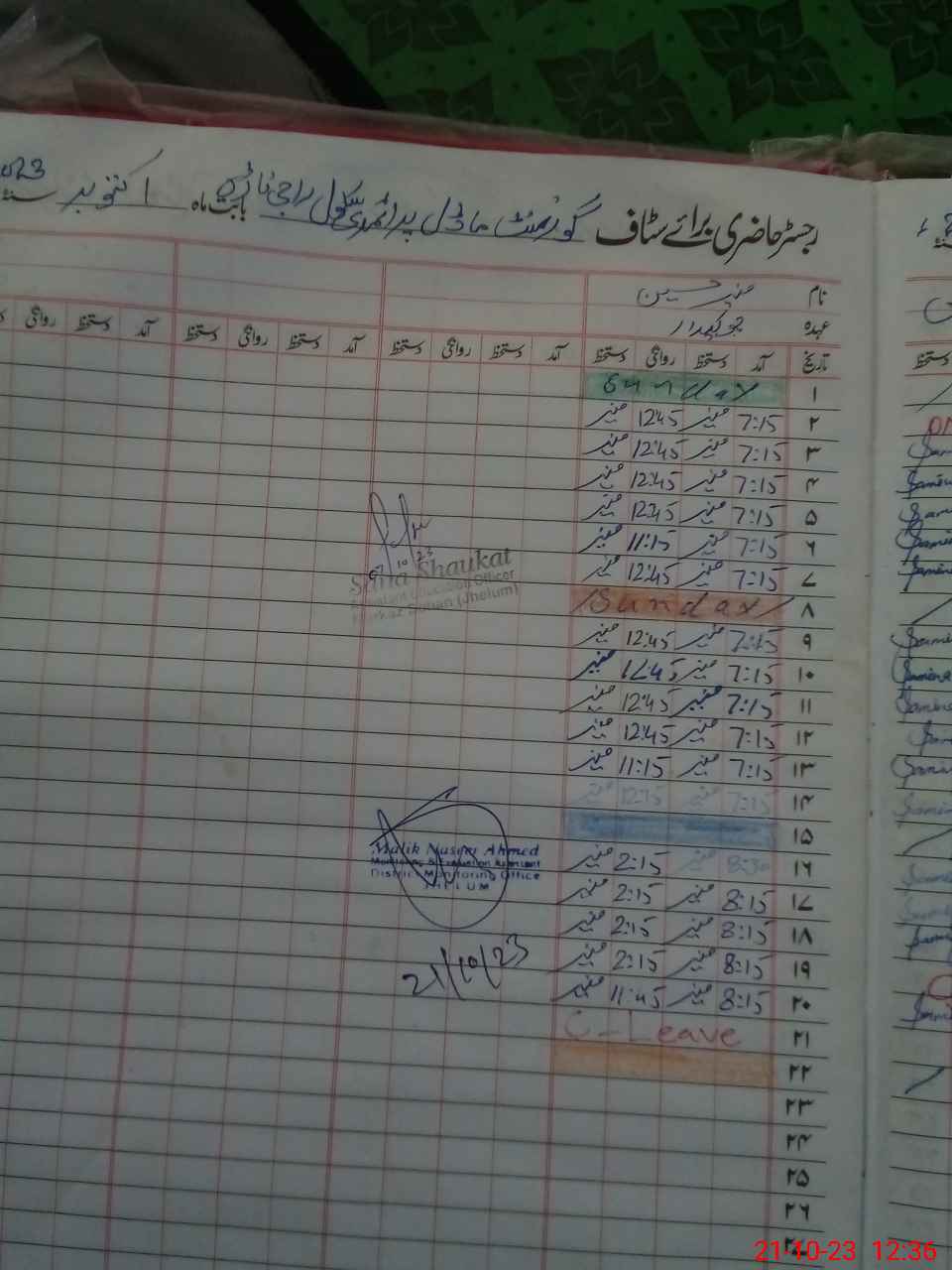 | CNIC | Full Name | Designation | R/C | Absence During Last Calender Month |