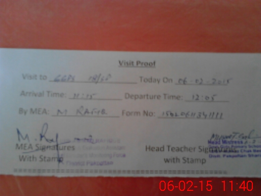 | Attendance Register | Head Teacher | MEA with School | Visit Proof |