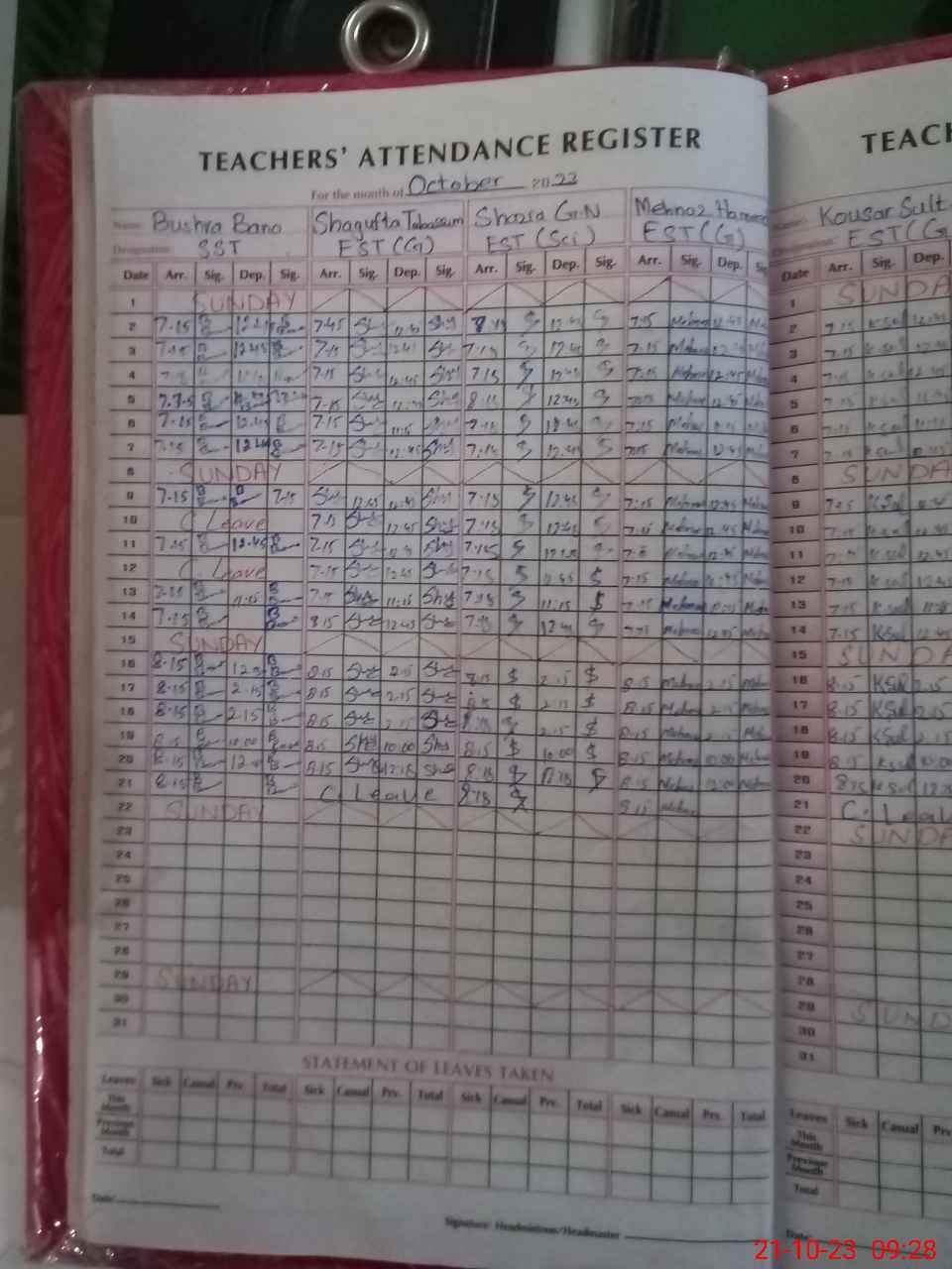 | Attendance Register | Head Teacher | MEA with School | Visit Proof |