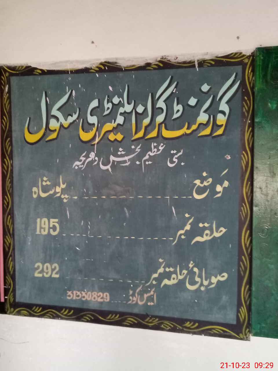 | EMIS Code: 31330829 | Name of School: GGHS AZEEM BUKHSH DHAREEJA | |||