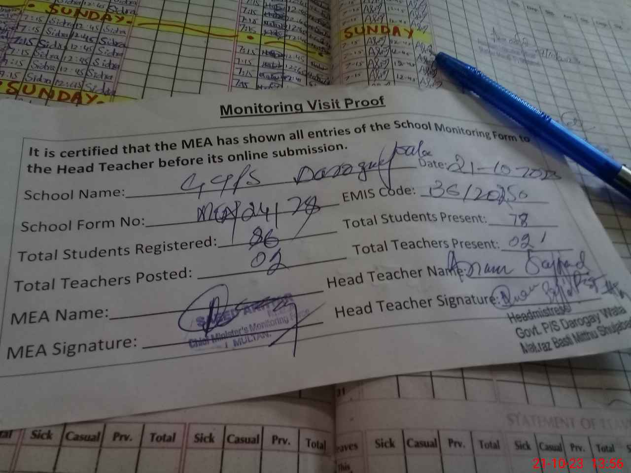 | EMIS Code: 36120250 | Name of School: GGPS DAROGAY WALA SHUJABAD | |||