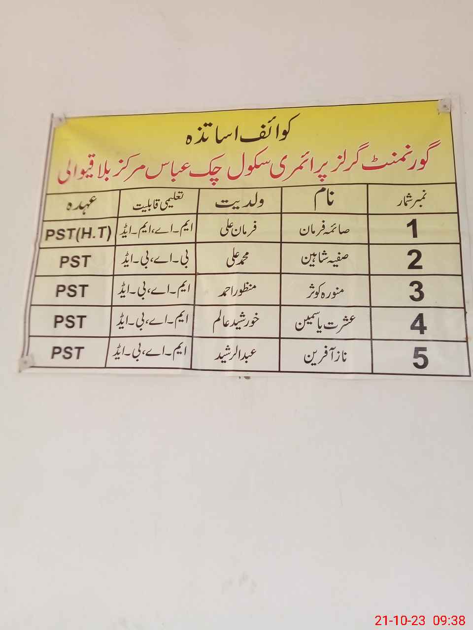 | Name: Sa**** Fa**** Designation: (School Headmaster's/Headmistress's) PST Phone/Cell Number: 03**** |