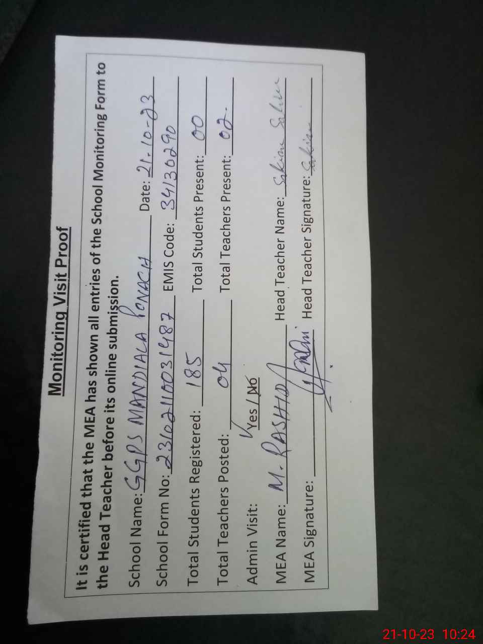 | EMIS Code: 34130290 | Name of School: GGPS MANDIALA PONAICH | |||