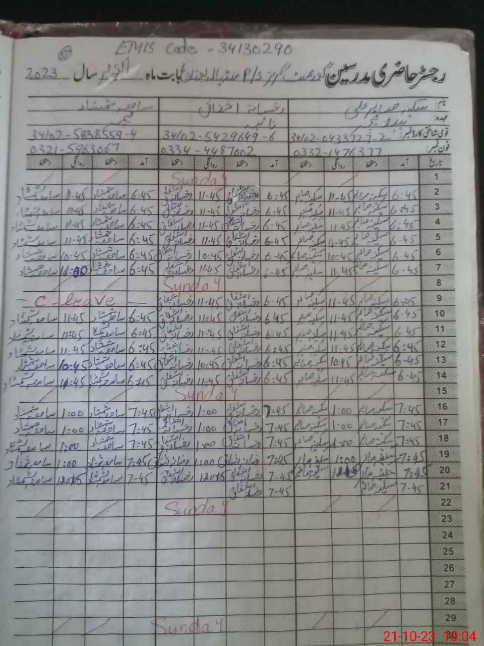 | Name: Sa**** Sh**** Designation: (School Headmaster's/Headmistress's) PST/PTC/JV Phone/Cell Number: 03**** |