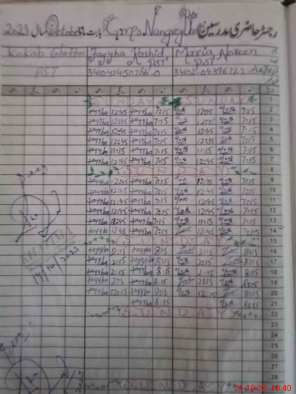 | 34**** | Ko**** Gh**** | 2 | 2 | 0 | 0 | 0 | 0 | 0 | 0 | 0 | 0 | 0 | Absent (Un-Authorized) |
