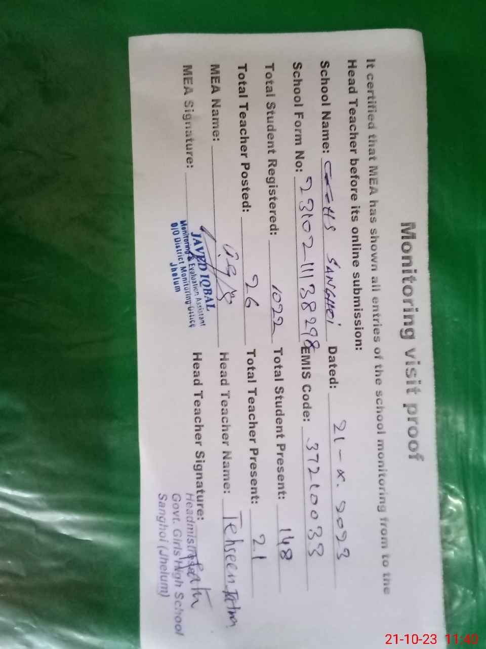 | EMIS Code: 37210033 | Name of School: GGHS SANGHOI | |||