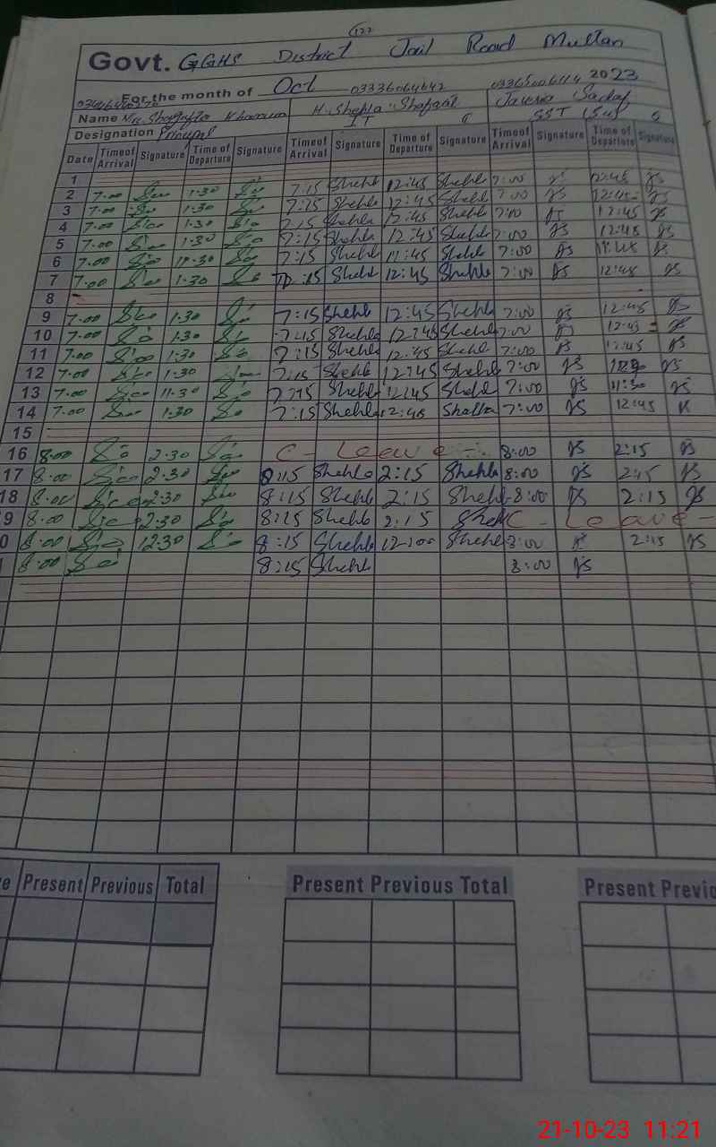 | Name: Az**** Ja**** Designation: (School Headmaster's/Headmistress's) Incharge Head Teacher Phone/Cell Number: 03**** |