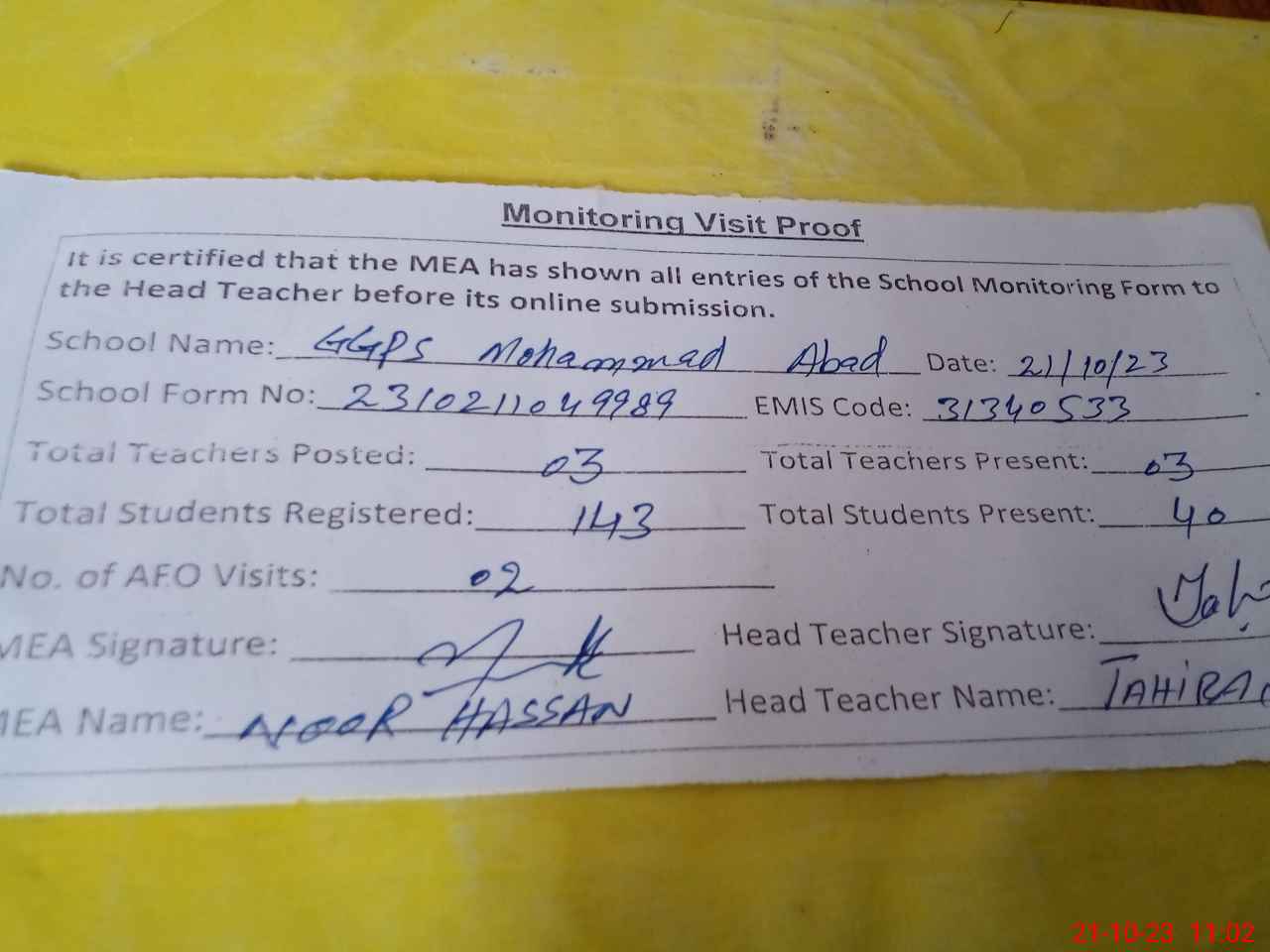 | EMIS Code: 31340533 | Name of School: GGPS MOHAMAD ABAD | |||