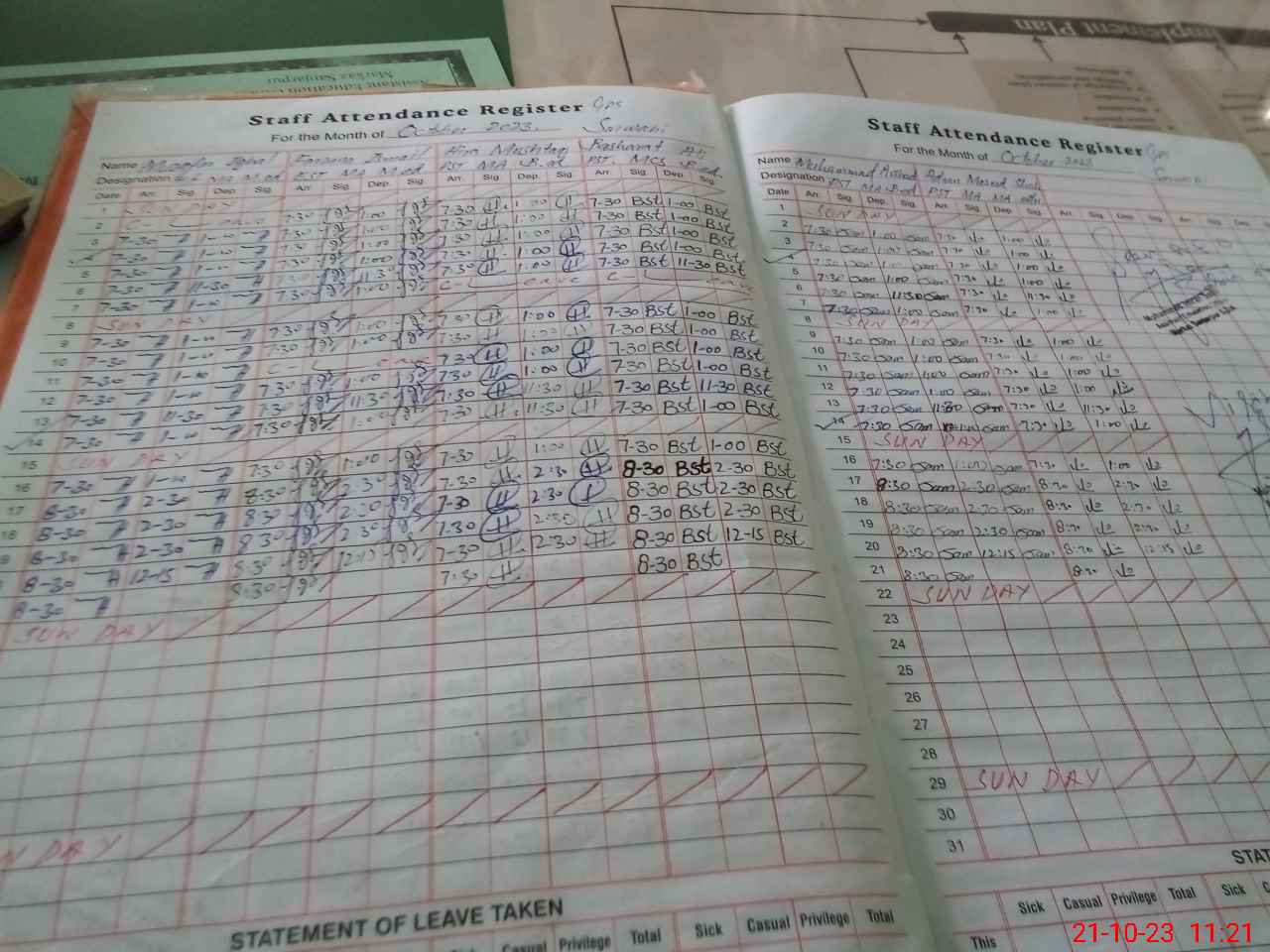 | CNIC | Full Name | Designation | R/C | Absence During Last Calender Month |