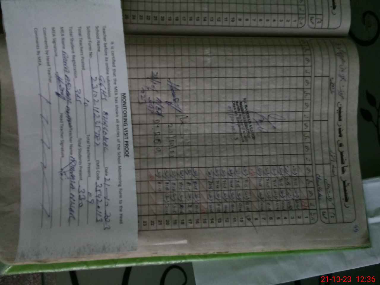 | Attendance Register | Head Teacher | MEA with School | Visit Proof |